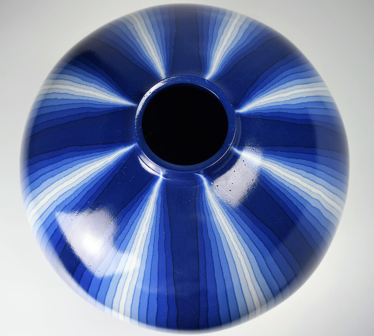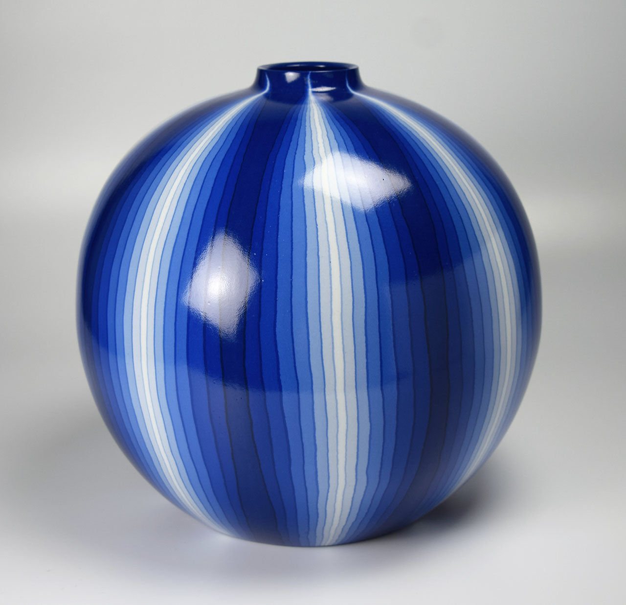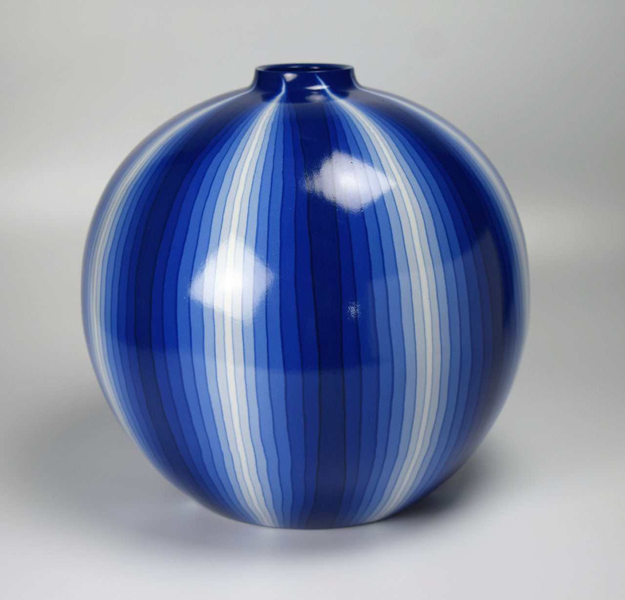 Flower vessel, Pot, Muku ash glazed, Kneading technique, Line design, Ultramarine - Koyo Matsui, Kasama ware, Ceramics