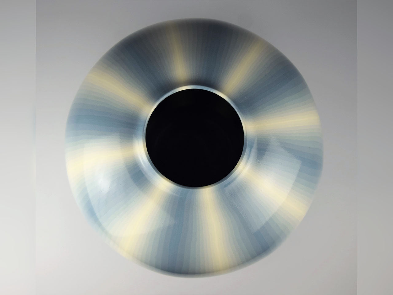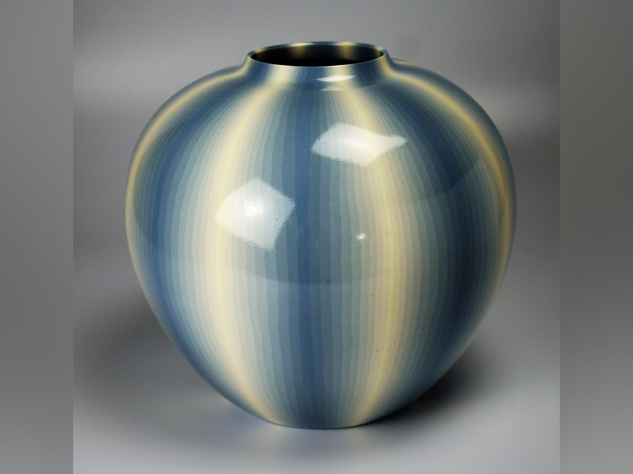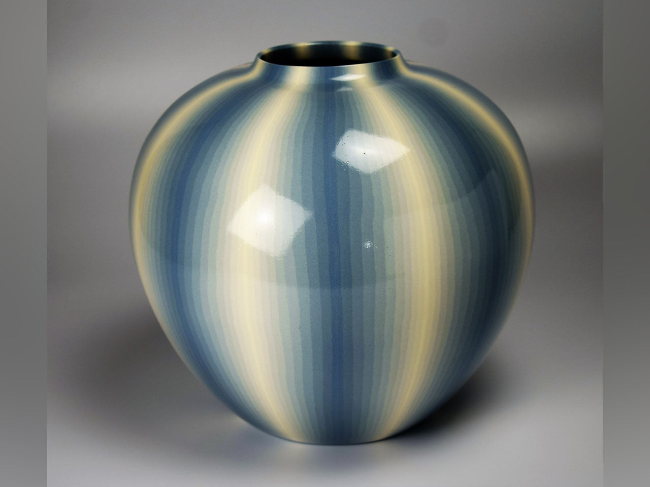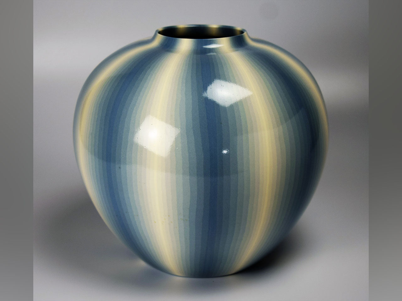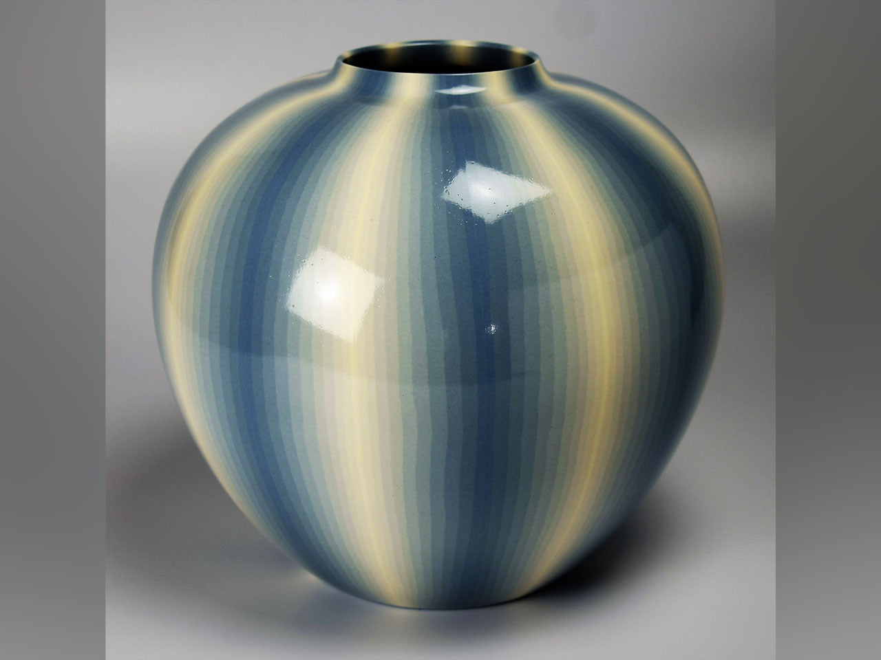 Flower vessel, Pot, Muku ash glazed, Kneading technique, Line design, Light aqua - Koyo Matsui, Kasama ware, Ceramics