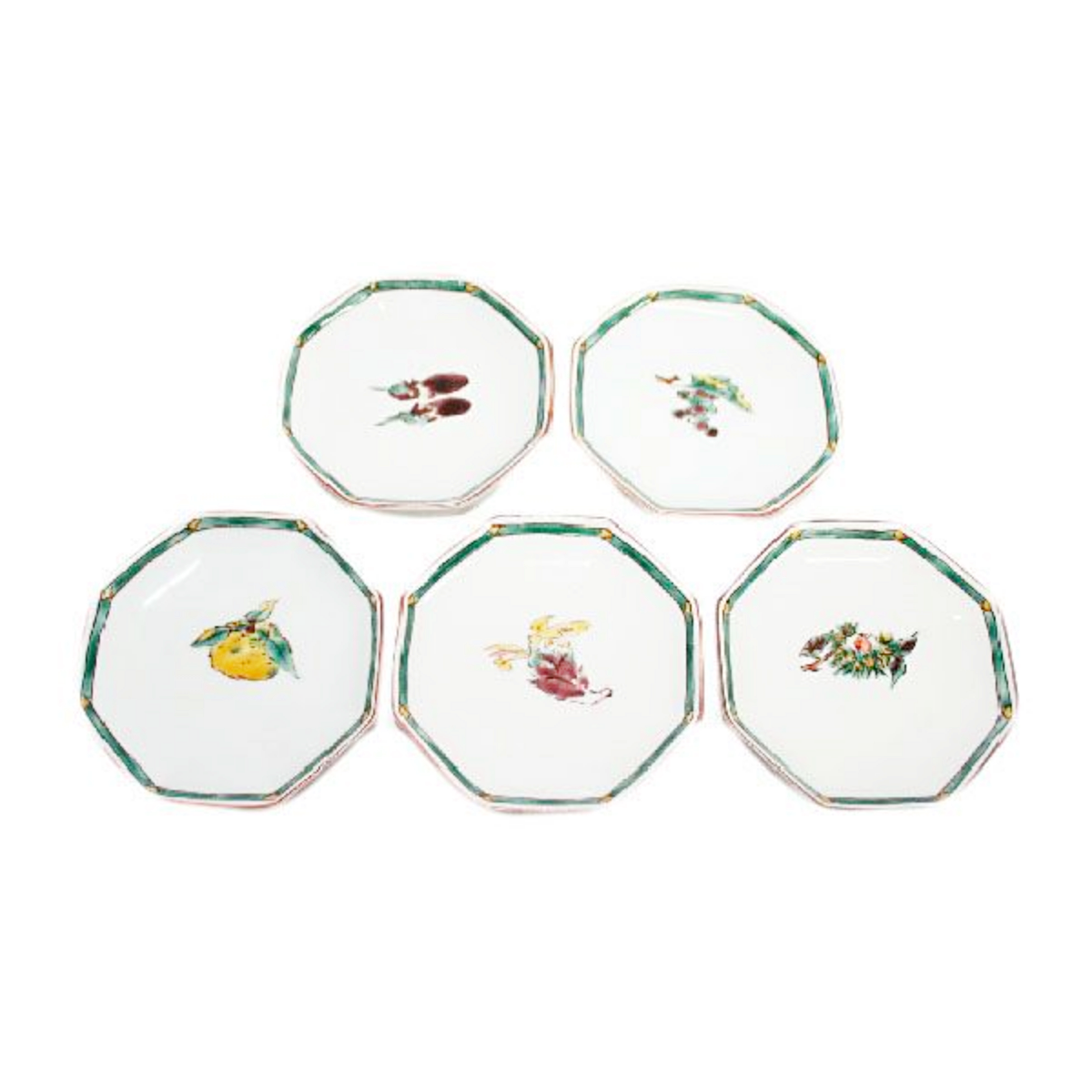 Table ware, Octagonal Plate 5 pcs set, 4-sun, Assorted fruits patterns, Hand-drawn - Kutani Bitouen, Eisho Teramae, Kutani ware, Ceramics
