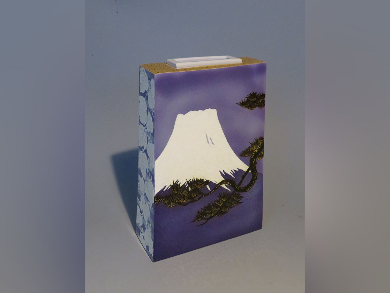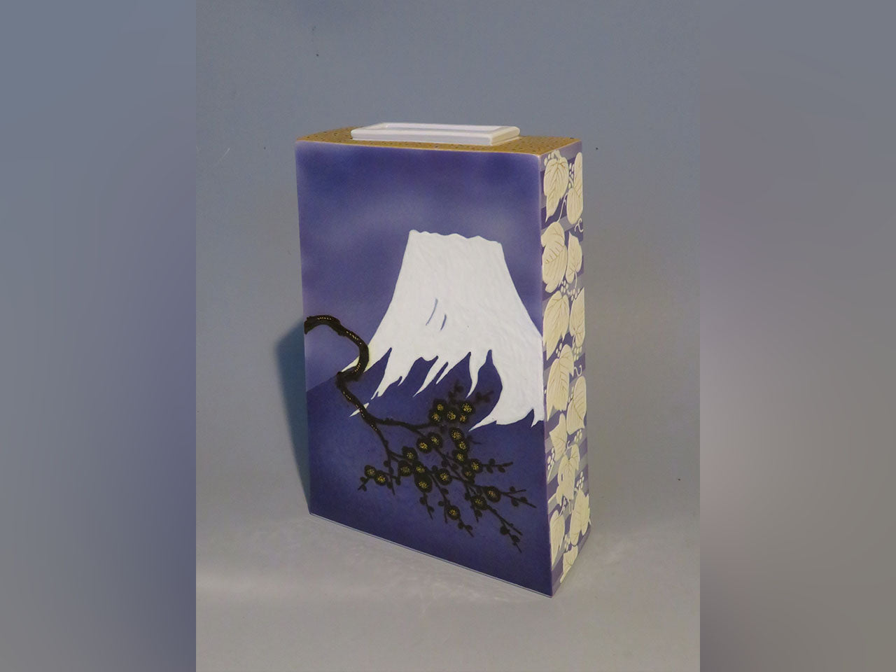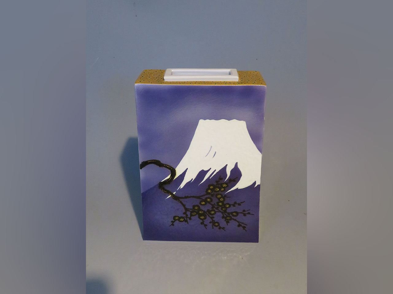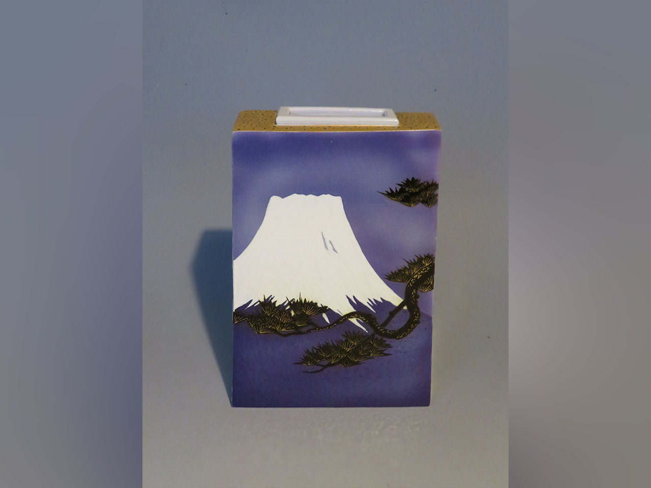 Flower vessel, Rectangle pot, Colored glaze, Mt. Fuji, Hand-drawn - Yoshihiro Yamaguchi, Kutani ware, Ceramics