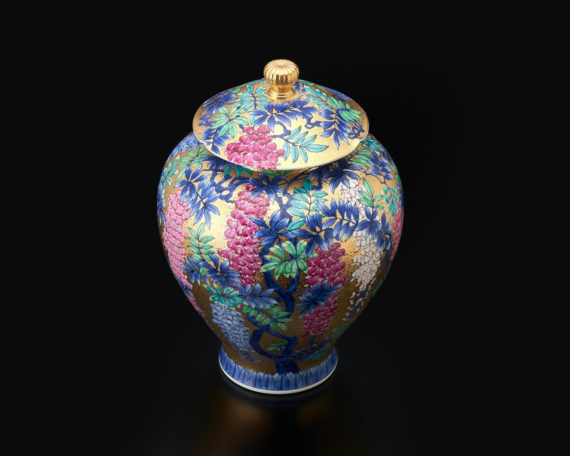 飾り「飾壷 金彩藤絵」 金龍窯 江口天童 有田焼 陶磁器