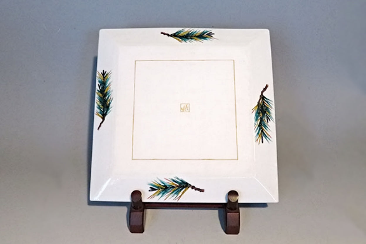 飾り 「青手 水芭蕉文 四方皿 手描き」 山口義博 九谷焼 陶磁器