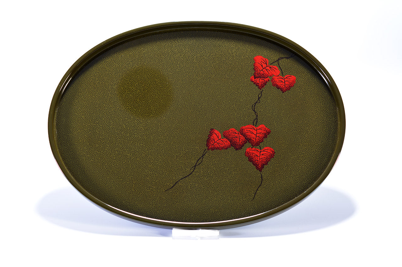 餐桌小物 托盘 七子涂 叶 白川胜义 津轻漆器