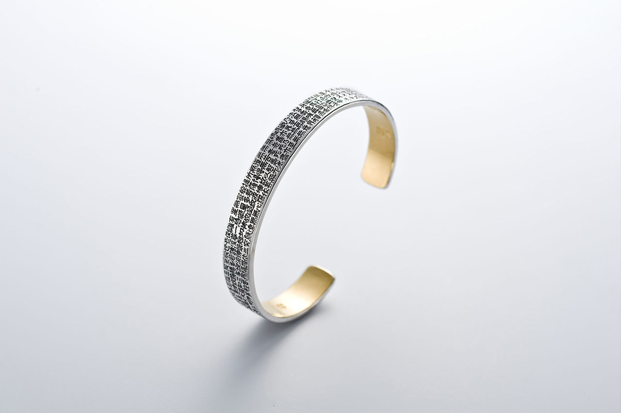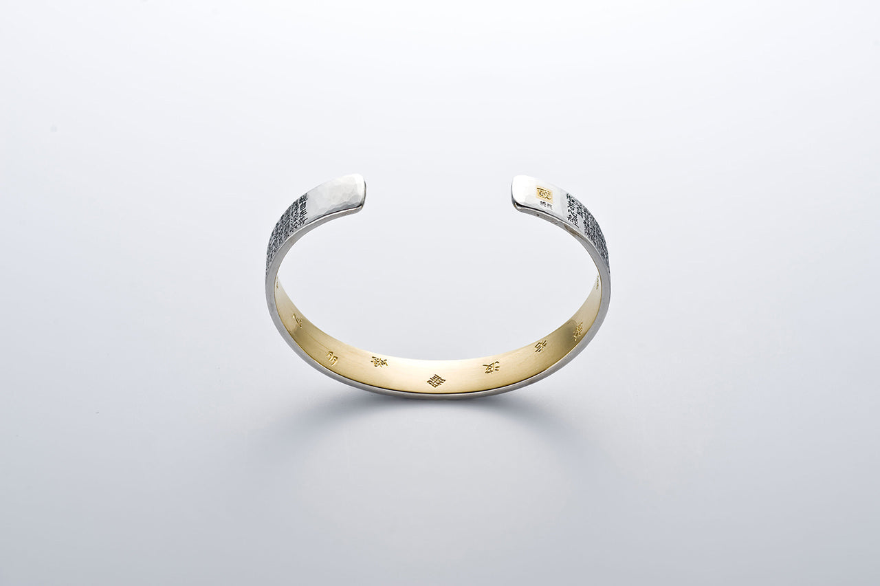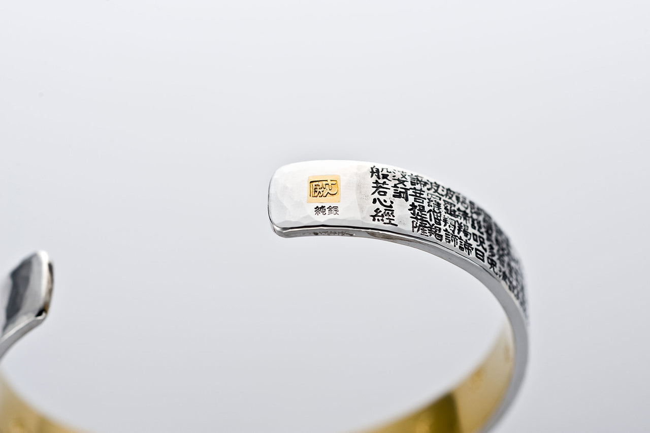 首饰 般若心经汉字纯银手镯 内侧纯金贴金 S号 泉健一郎 东京银器 金属工艺品