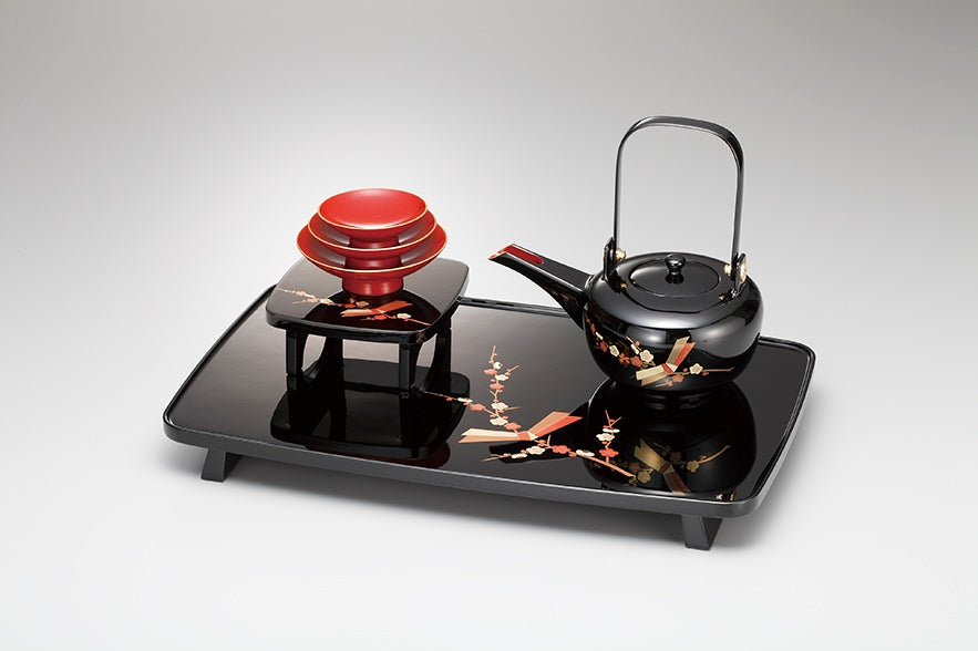 酒器 屠苏器 四件套 结梅 黑色 会津漆器 漆器