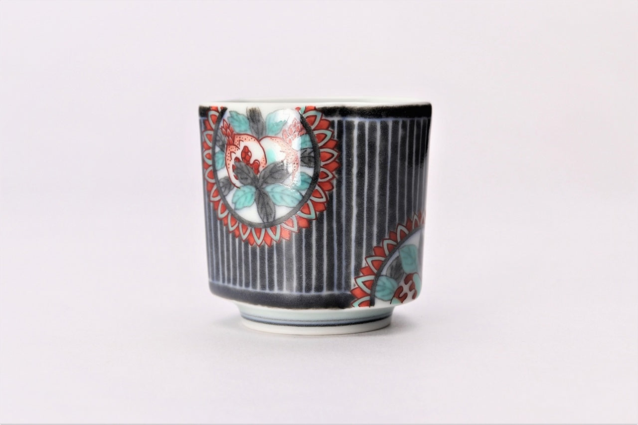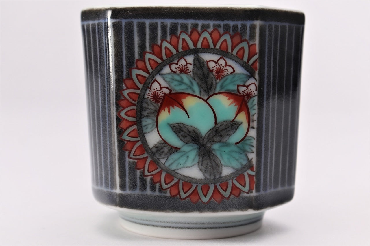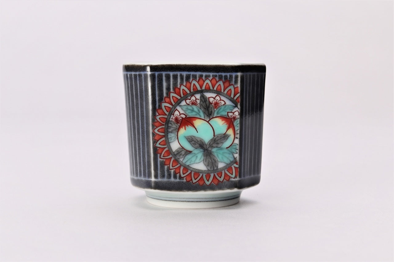 酒器 清酒杯 墨色墨弹 三果纹 十四代今右卫门 有田烧 陶瓷器