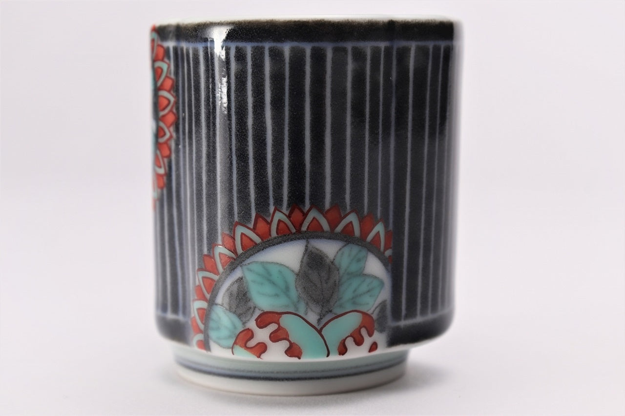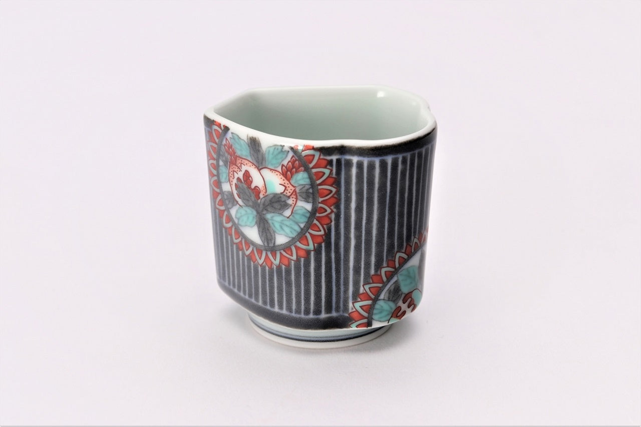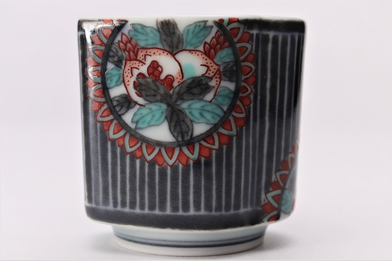 酒器 清酒杯 墨色墨弹 三果纹 十四代今右卫门 有田烧 陶瓷器