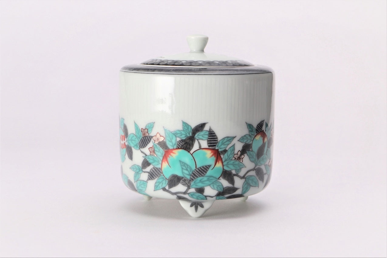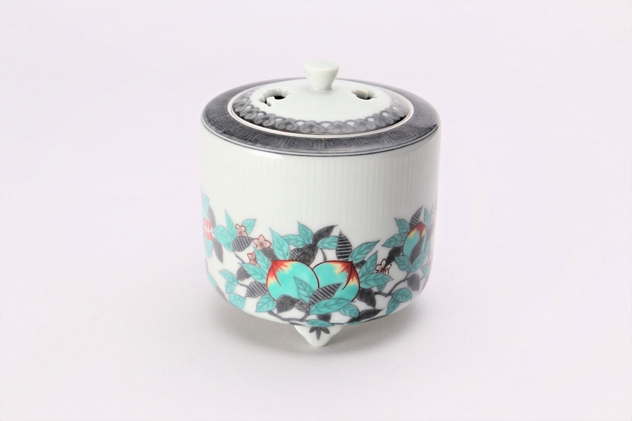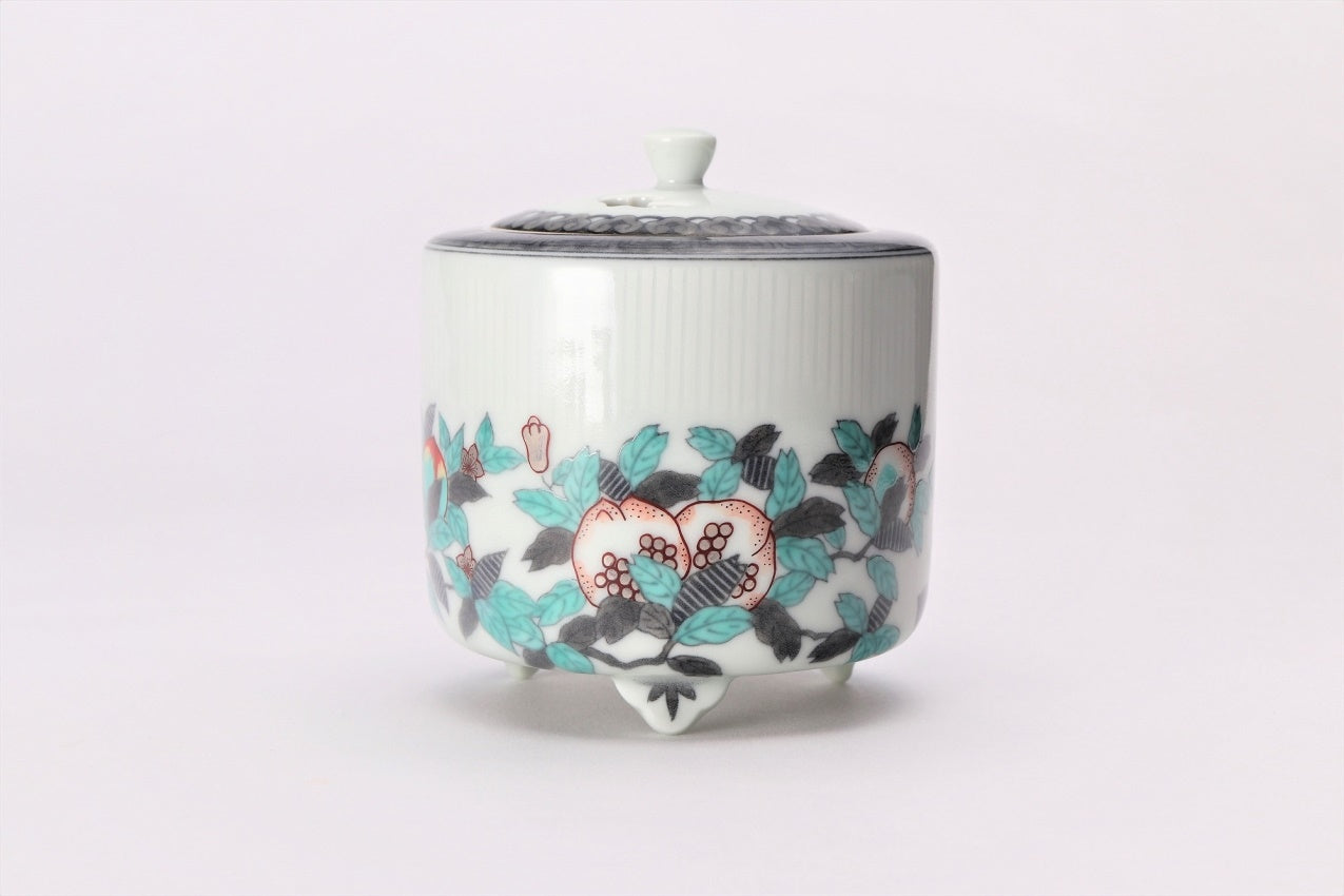 装饰摆件 香炉 色绘 雪花墨色墨弹 三果纹 十四代今右卫门 有田烧 陶瓷器