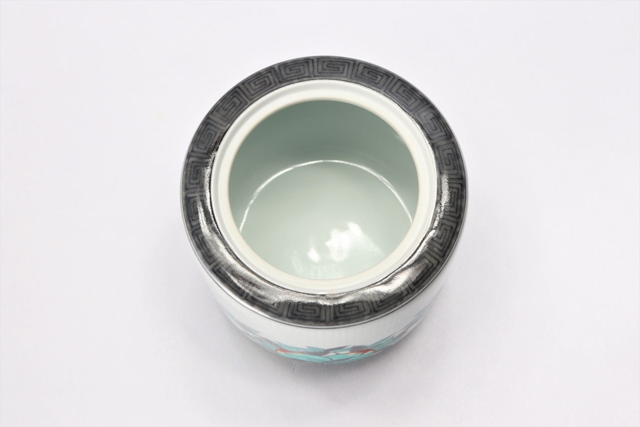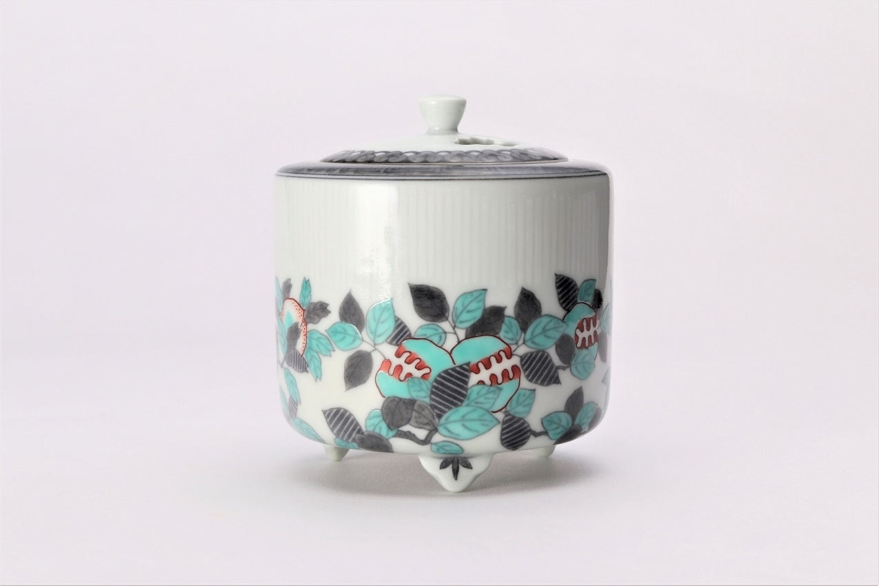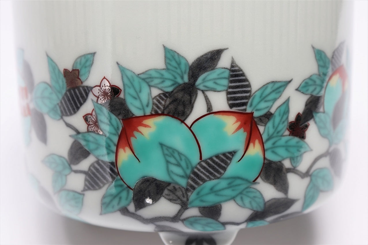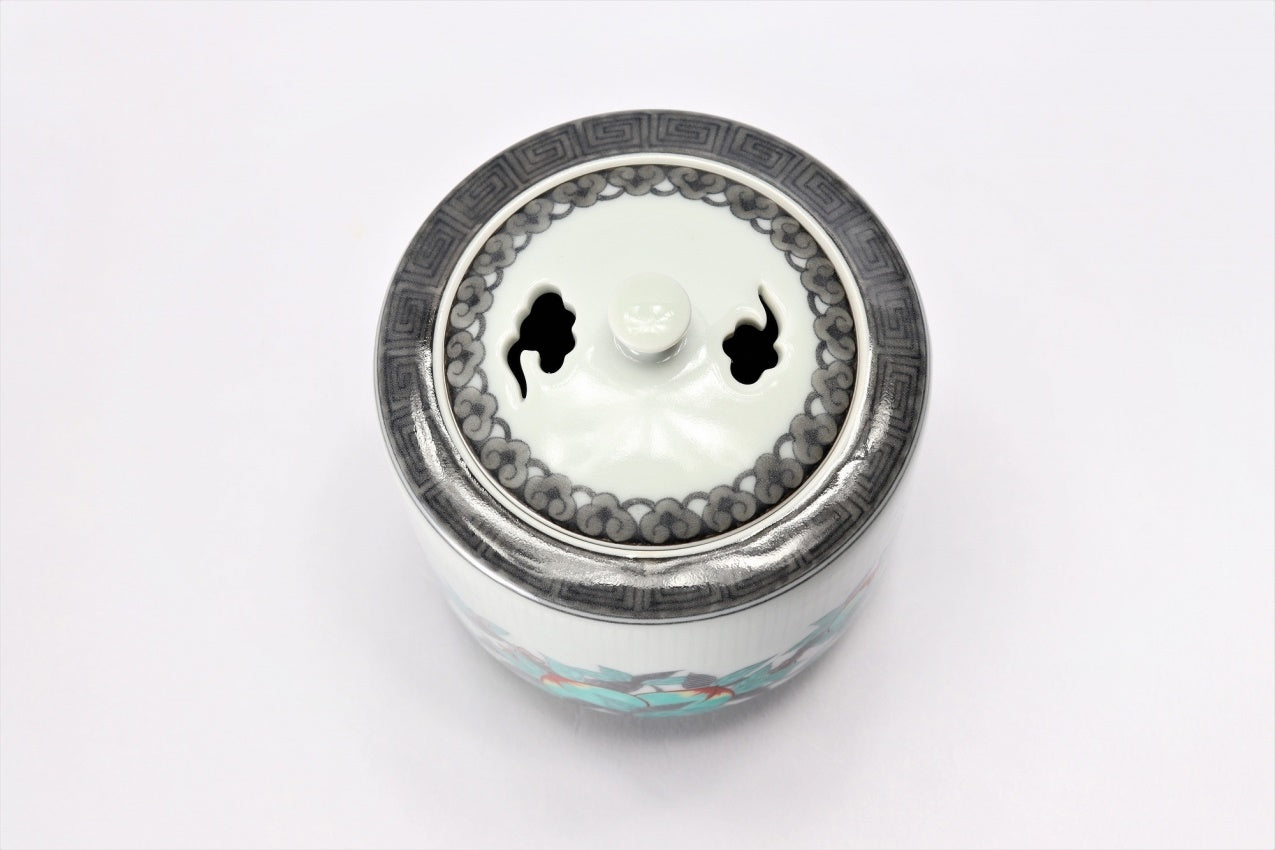 装饰摆件 香炉 色绘 雪花墨色墨弹 三果纹 十四代今右卫门 有田烧 陶瓷器