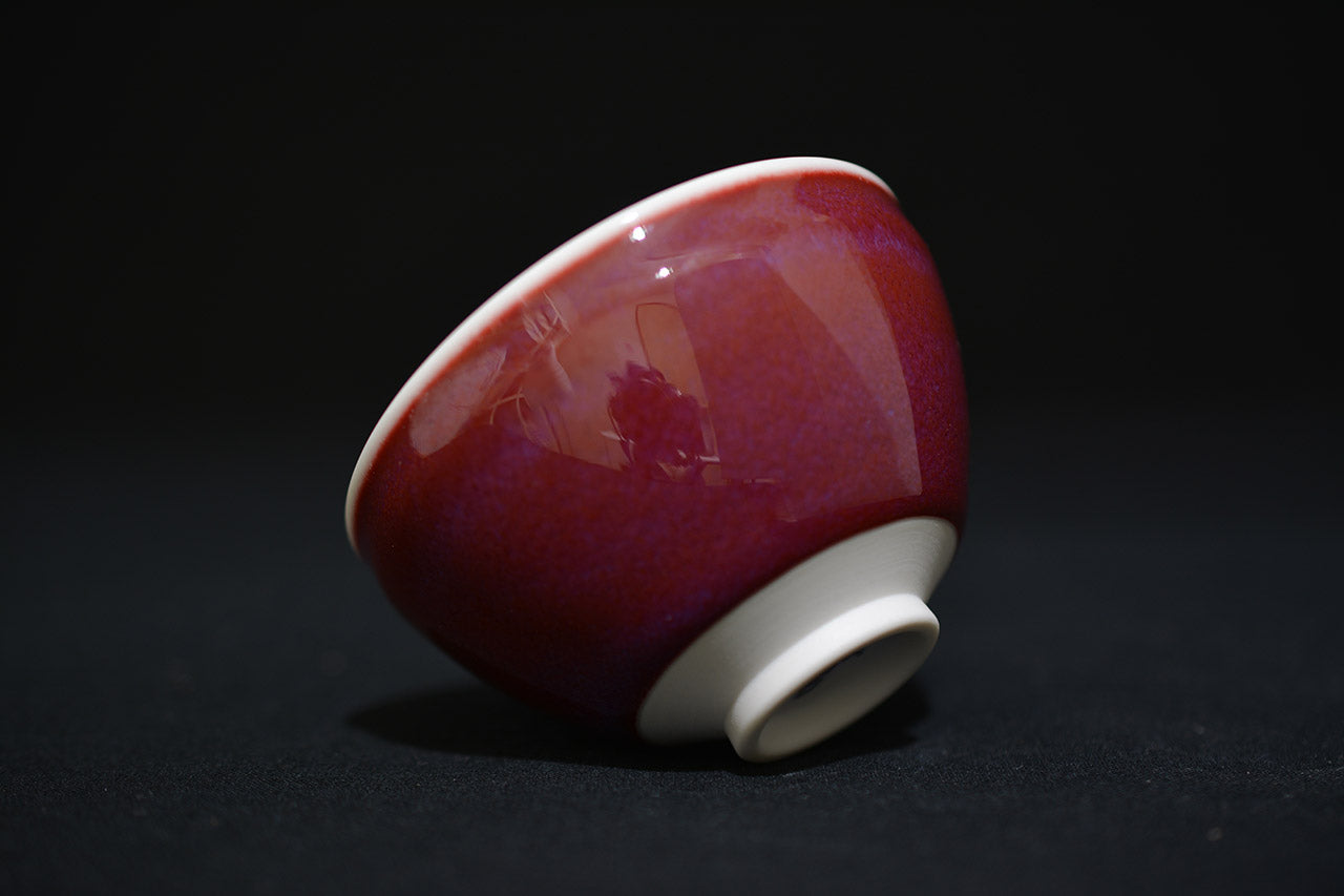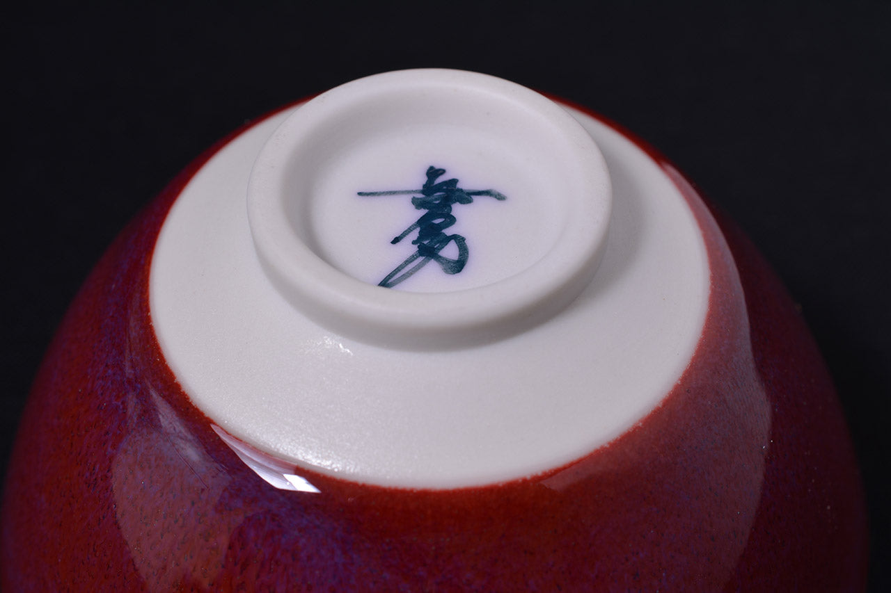辰砂釉瓷器在烧制过程中,可能会出现裂纹、划痕,或发生釉料流动等,因此窑中烧制的约一半左右无法出厂,是一种难度很高的技法。真右卫门窑克服了技术上的困难,制作出独特的宝石一般的红色辰砂釉瓷器。