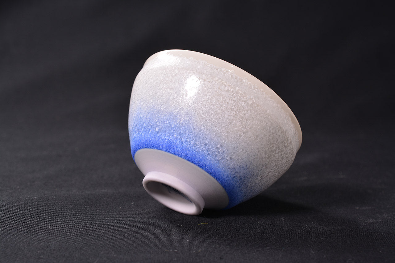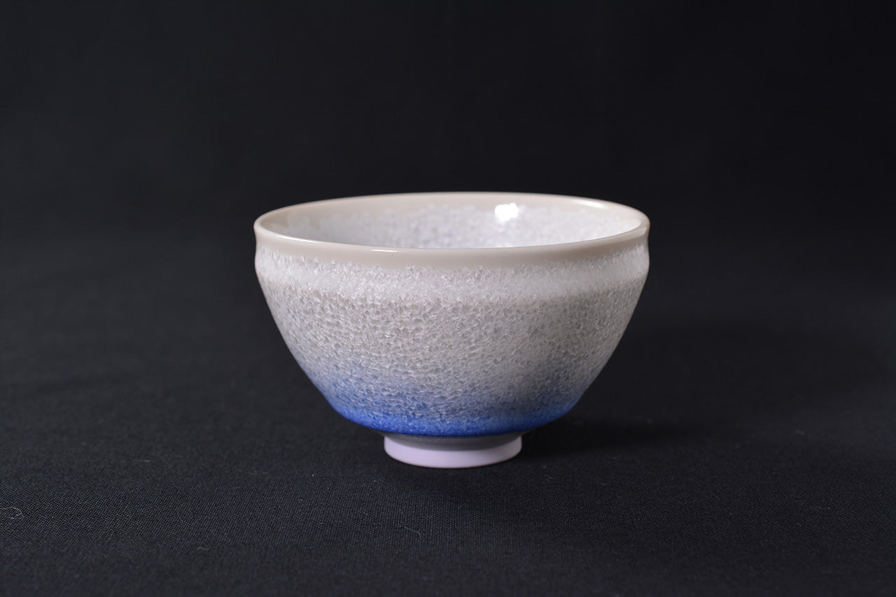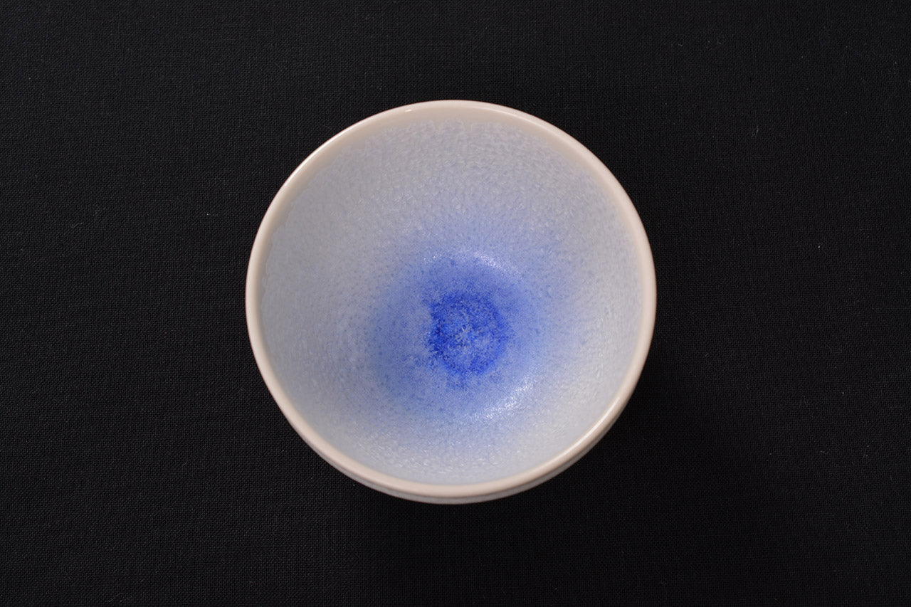 有田烧的白瓷中出现结晶,并洒落着雾状的蓝色,这样的设计使人联想到泛着阳光的海面,宛如宝石般美丽。中斟入茶或酒时结晶会闪闪发光,放射出使人沉醉其中而忘记时间的梦幻光彩。