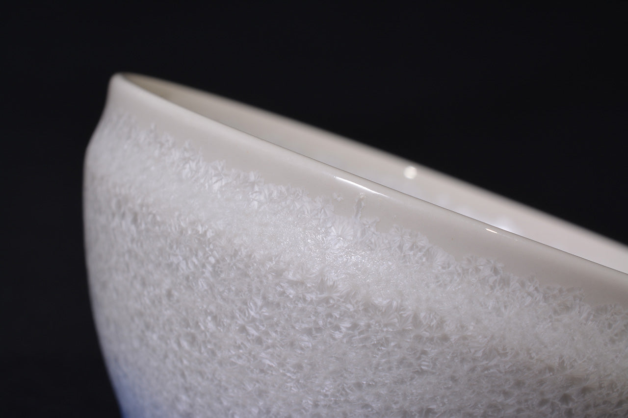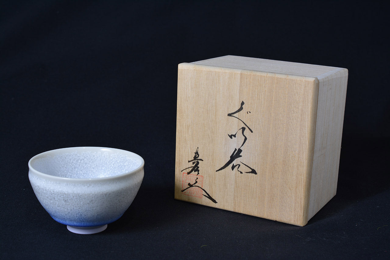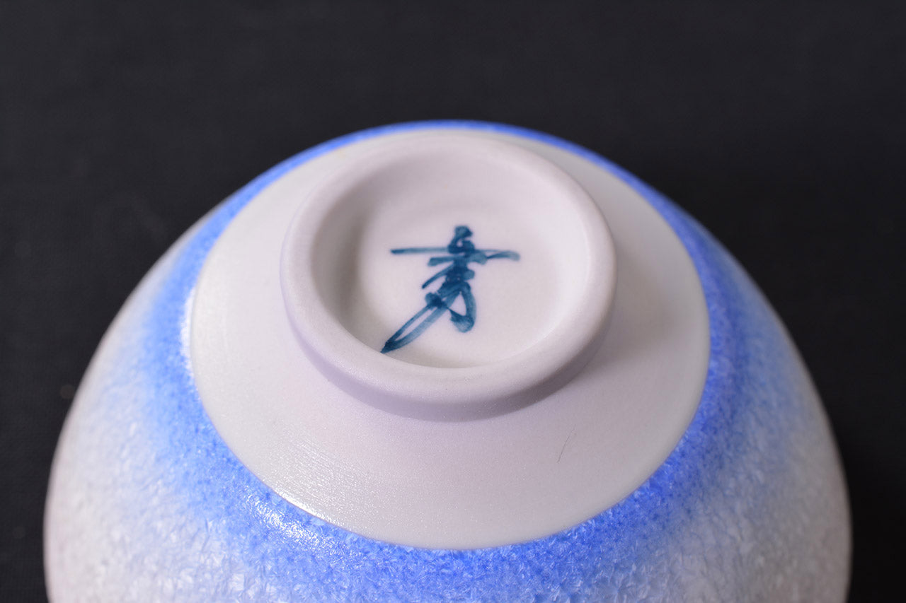 有田烧的白瓷中出现结晶,并洒落着雾状的蓝色,这样的设计使人联想到泛着阳光的海面,宛如宝石般美丽。中斟入茶或酒时结晶会闪闪发光,放射出使人沉醉其中而忘记时间的梦幻光彩。