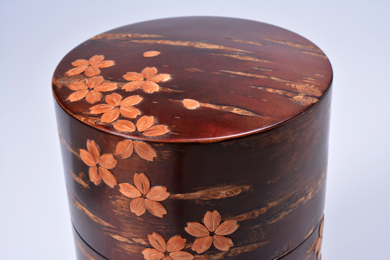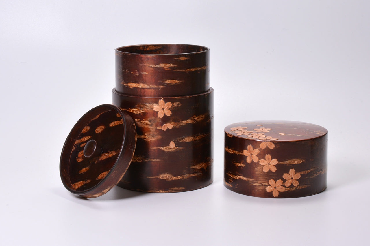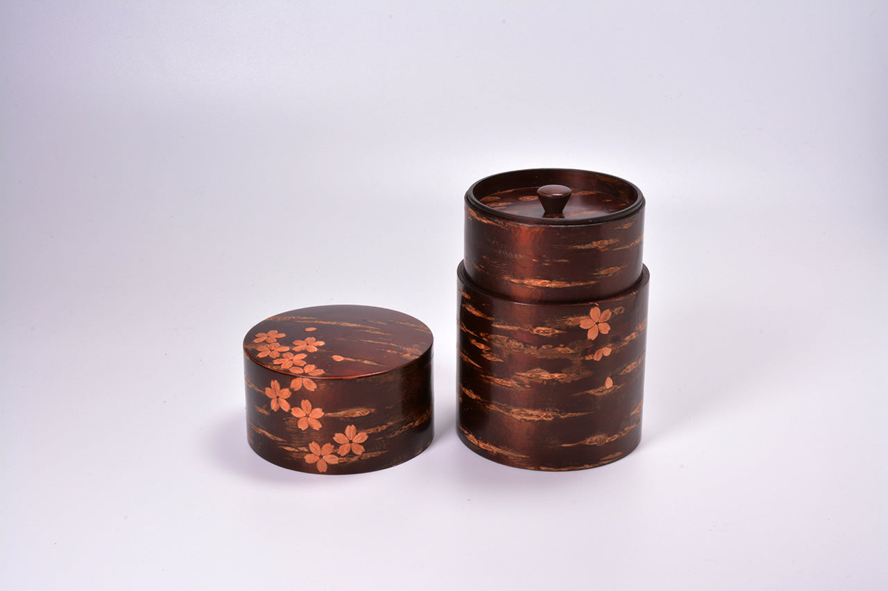 茶具 树皮茶叶罐 大 樱吹雪 樱皮细工 木工艺品