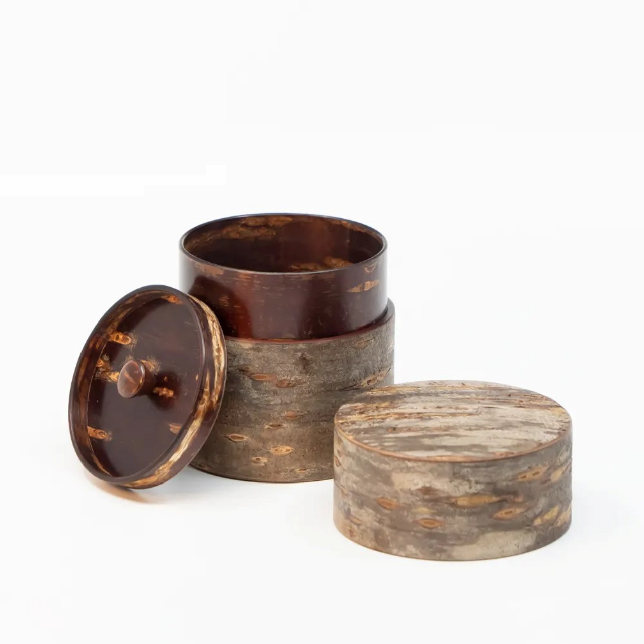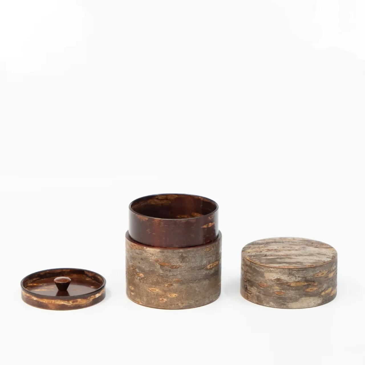 山樱树皮被称为“会呼吸的素材”,能自然调节湿度,减少结露,使茶叶或咖啡豆保持自然新鲜。不生锈、耐久安全,可安心长期使用。